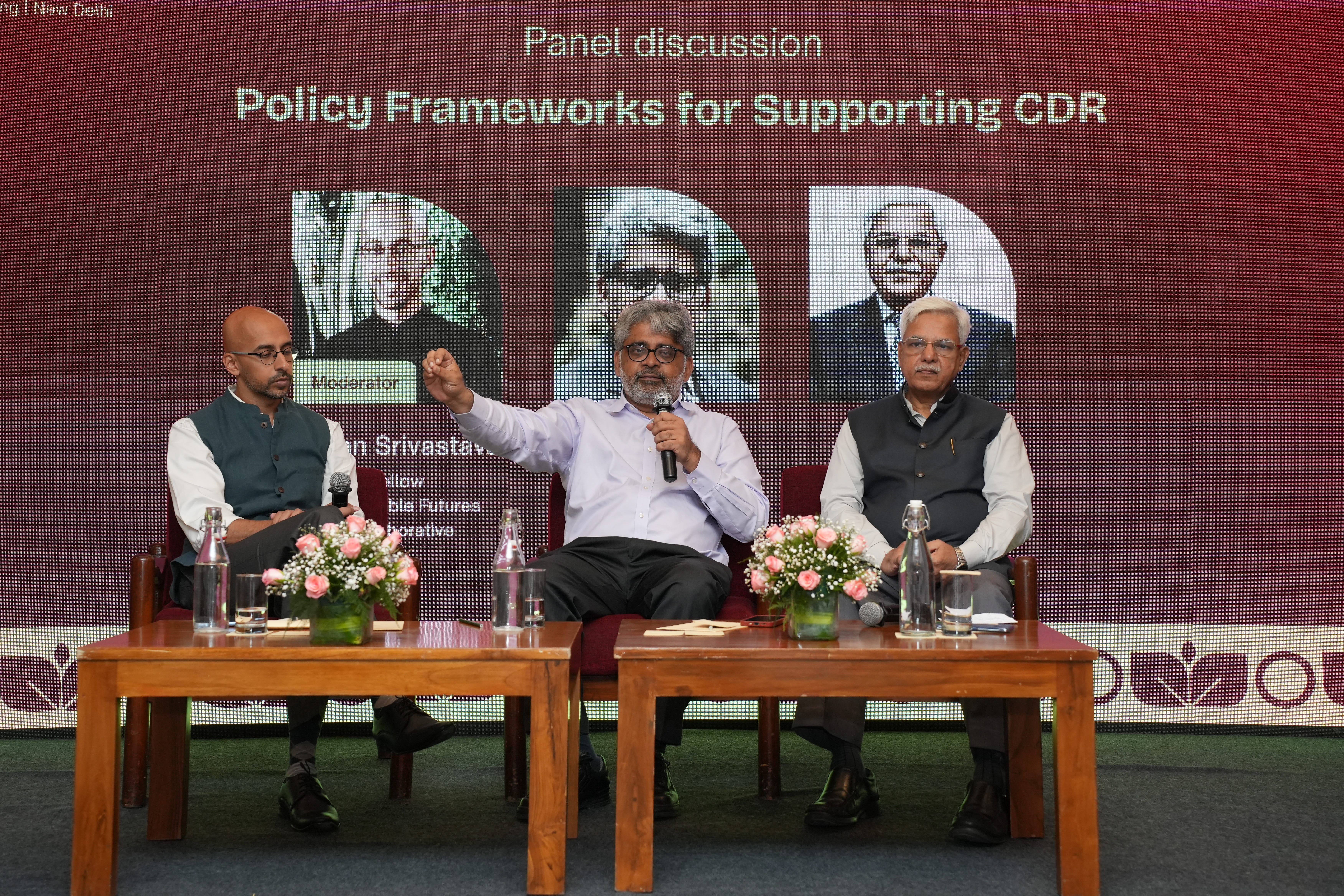 The conversation on Policy Frameworks for Supporting CDR featured experts like Aman Srivastava - Fellow: Sustainable Futures Collaborative, R R Rashmi, The Energy and Resources Institute; and Rathin Roy, Former Economic Advisor - PMO, who delved into the essential policy actions India needs to undertake for scaling carbon removal efforts & making our climate finance frameworks more robust.
