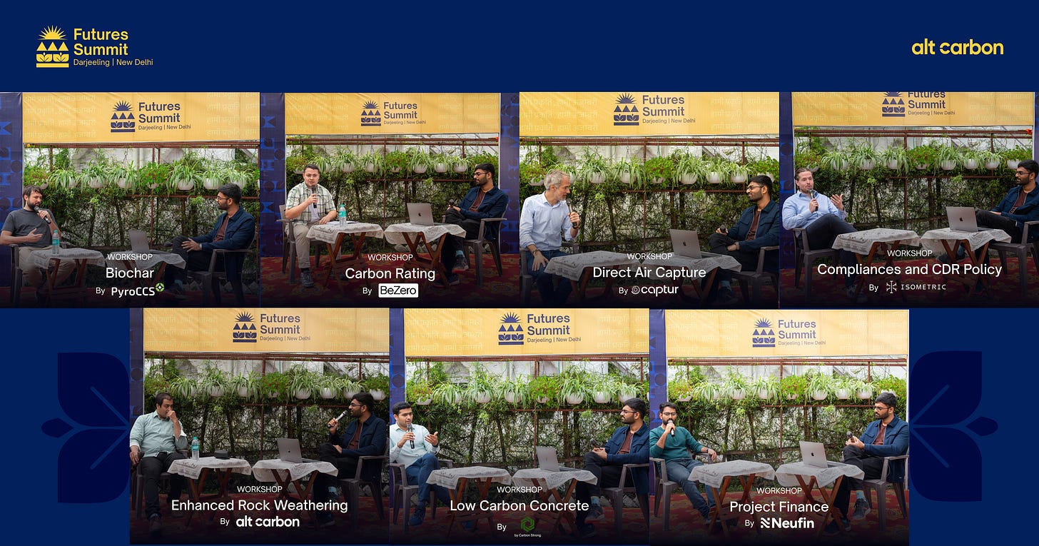 In addition, the summit hosted seven interactive workshops on Carbon Dioxide Removal (CDR) pathways and enablers moderated by Shrey Agarwal, Co-founder of Alt Carbon. These included a Biochar workshop led by Flo Oberhofer, COO of PyroCCS, a session on Client Perspectives by George Goodman from BeZero Carbon, and a workshop on Low Carbon Concrete by Harsh Jain, Co-founder of Carbon Strong. Other notable workshops covered Compliances and CDR Policy by David Armstrong from Isometric; Enhanced Rock Weathering (ERW) by Dr. Sambuddha Misra, Alt Carbon; Direct Air Capture (DAC) by Thomas Louagie, Co-founder & CEO of Captur Tower; and a Project Financing session led by Sarthak Mahapatra from Neufin.
