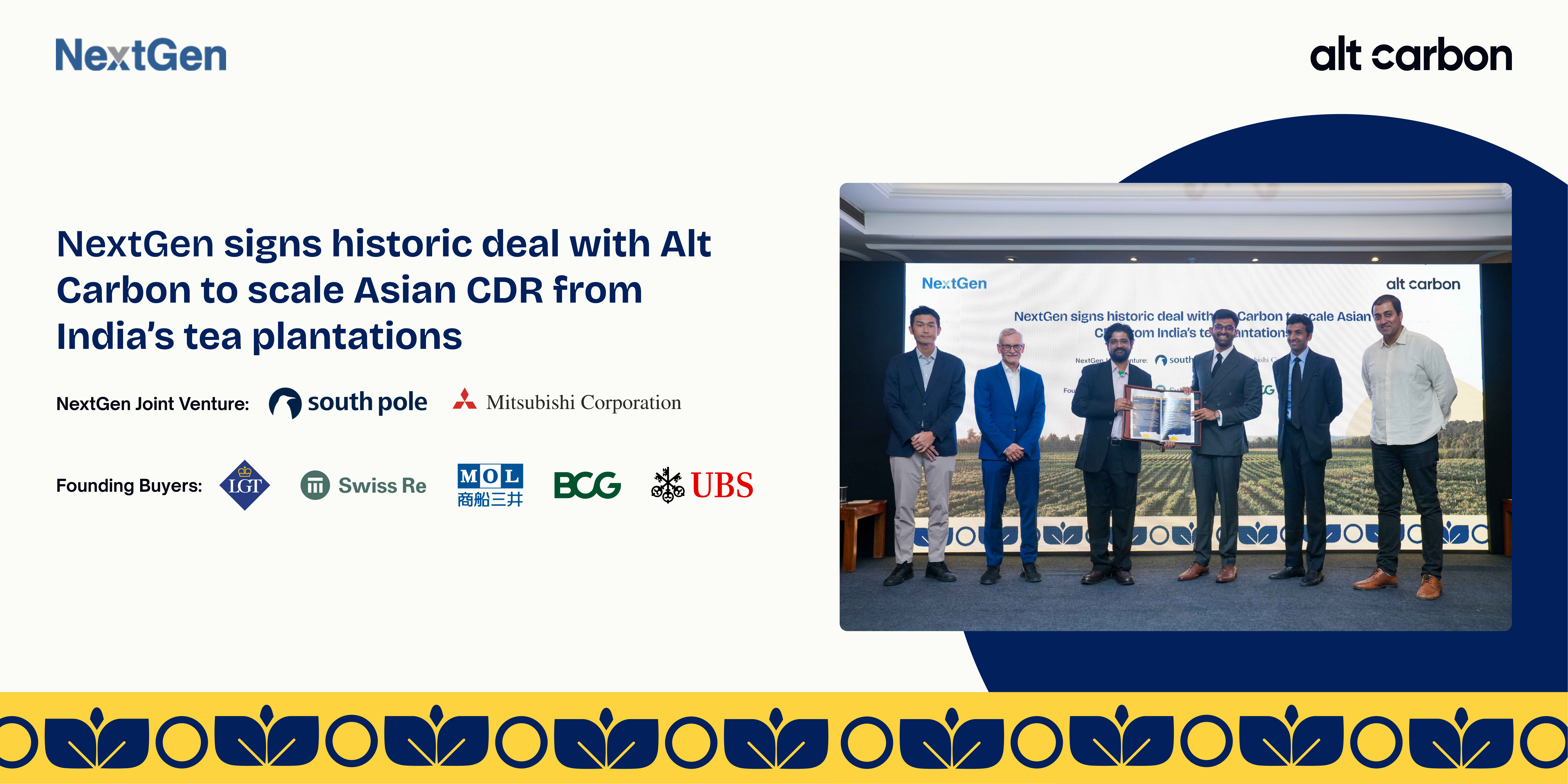 We’re excited to announce that Alt Carbon has signed a groundbreaking agreement with NextGen CDR—a joint venture between South Pole and Mitsubishi Corporation—at the Futures Summit 2024. This partnership will scale carbon removal from Darjeeling’s tea plantations using our Enhanced Rock Weathering method. The deal opens India’s CDR market to global buyers like Boston Consulting Group, LGT Group, Mitsui O.S.K. Lines, SwissRe and UBS. This is the first purchase for NextGen outside of Europe and the US, showcasing the country’s potential to lead in cost-effective, high-quality carbon removals. NextGen’s portfolio approach allows them to purchase cumulative credits across categories at an average of $200/tonne, proving climate solutions are within reach, benefiting both the planet and local farmers.